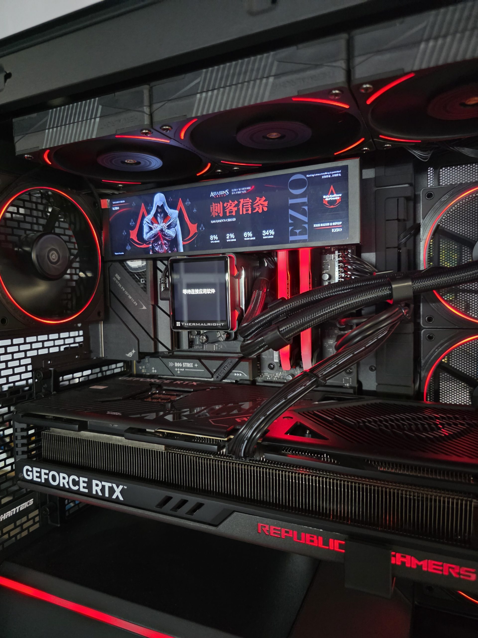 - Cooling: Custom hard-tube water loop (CPU + GPU + RAM blocks)